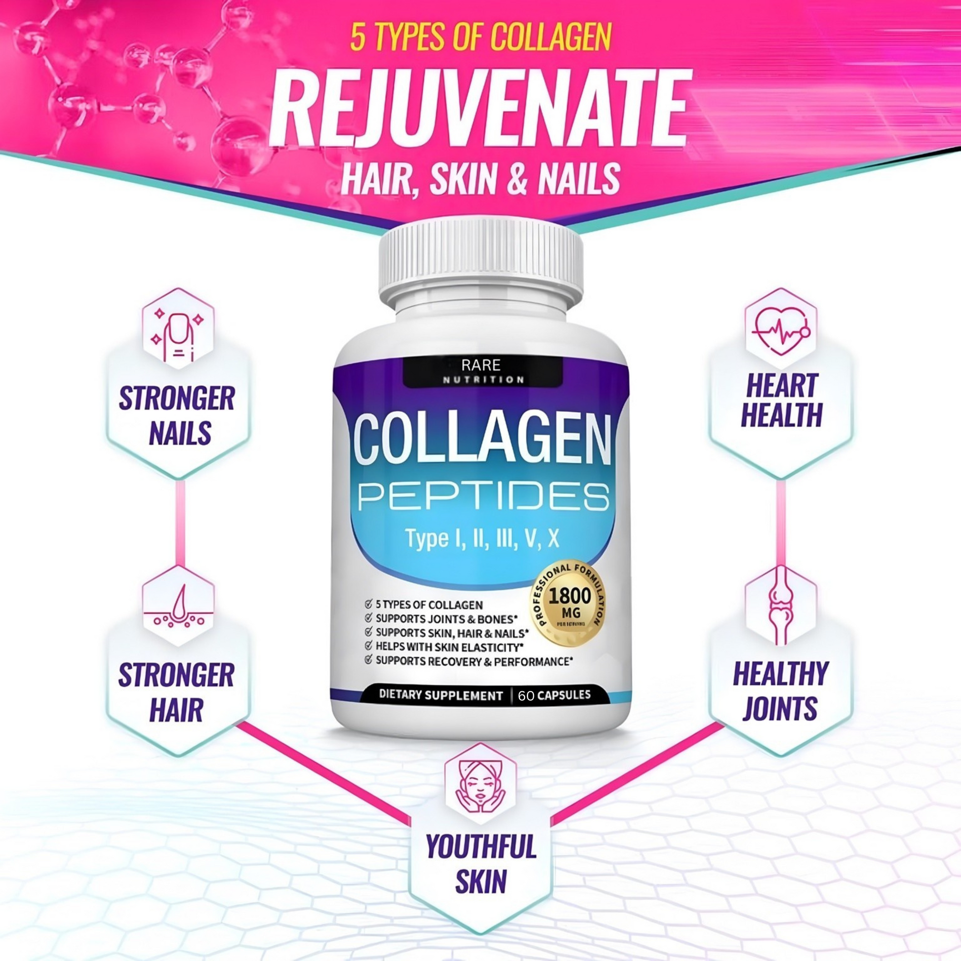 I originally got Rare Collagen Peptides to help with hair and nail growth, but it’s done so much more. Along with stronger nails and thicker hair, I’ve noticed less joint discomfort and smoother movement. After about 45 days, my skin also looks healthier — better tone, improved elasticity, and fewer fine lines on my face and neck. I take it every morning, and the capsules are easy to swallow with no aftertaste or digestive issues. It’s become a simple, reliable part of my daily routine, and I plan to keep it that way!